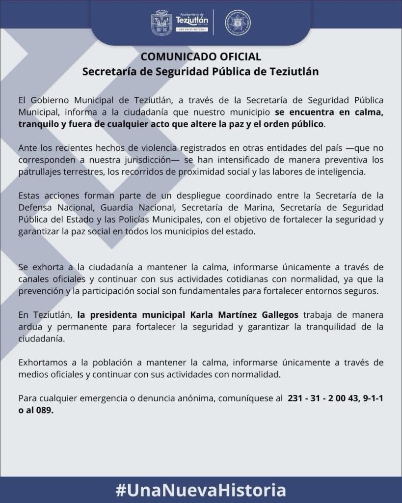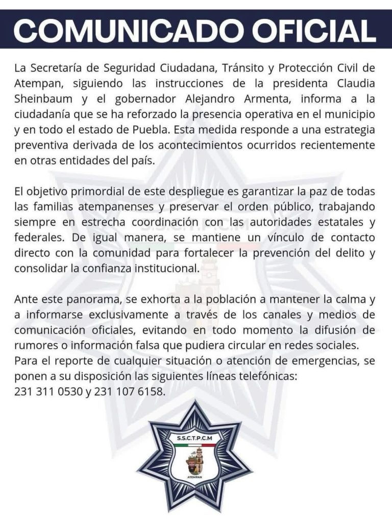 A través de comunicados oficiales, los ayuntamientos de #Teziutlán, #Atempan y #Tlatlauquitepec señalaron que se han intensificado los operativos de seguridad y los recorridos de vigilancia por parte de corporaciones de los tres niveles de gobierno.